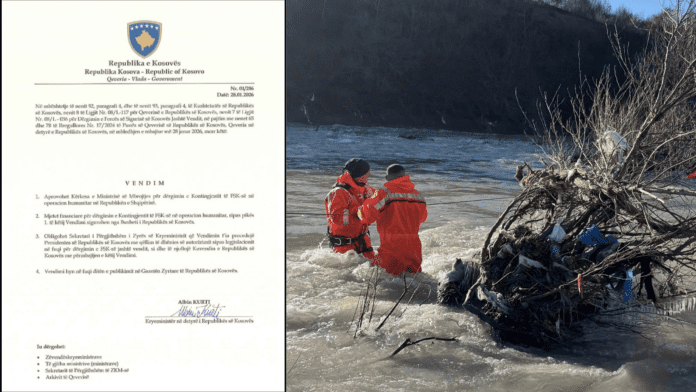 Qeveria në detyrë ka miratuar zyrtarisht vendimin për dërgimin e një kontingjenti të Forcës së Sigurisë së Kosovës (FSK) në Shqipëri në kuadër të një operacioni humanitar kërkim-shpëtimi. Vendimi u mor në mbledhjen e mbajtur më 28 janar dhe parashikon që shpenzimet për këtë angazhim të mbulohen nga Buxheti i Kosovës. Në dokumentin zyrtar theksohet se ndërhyrja bëhet në funksion të nevojave humanitare dhe në kuadër të bashkëpunimit mes dy shteteve.
