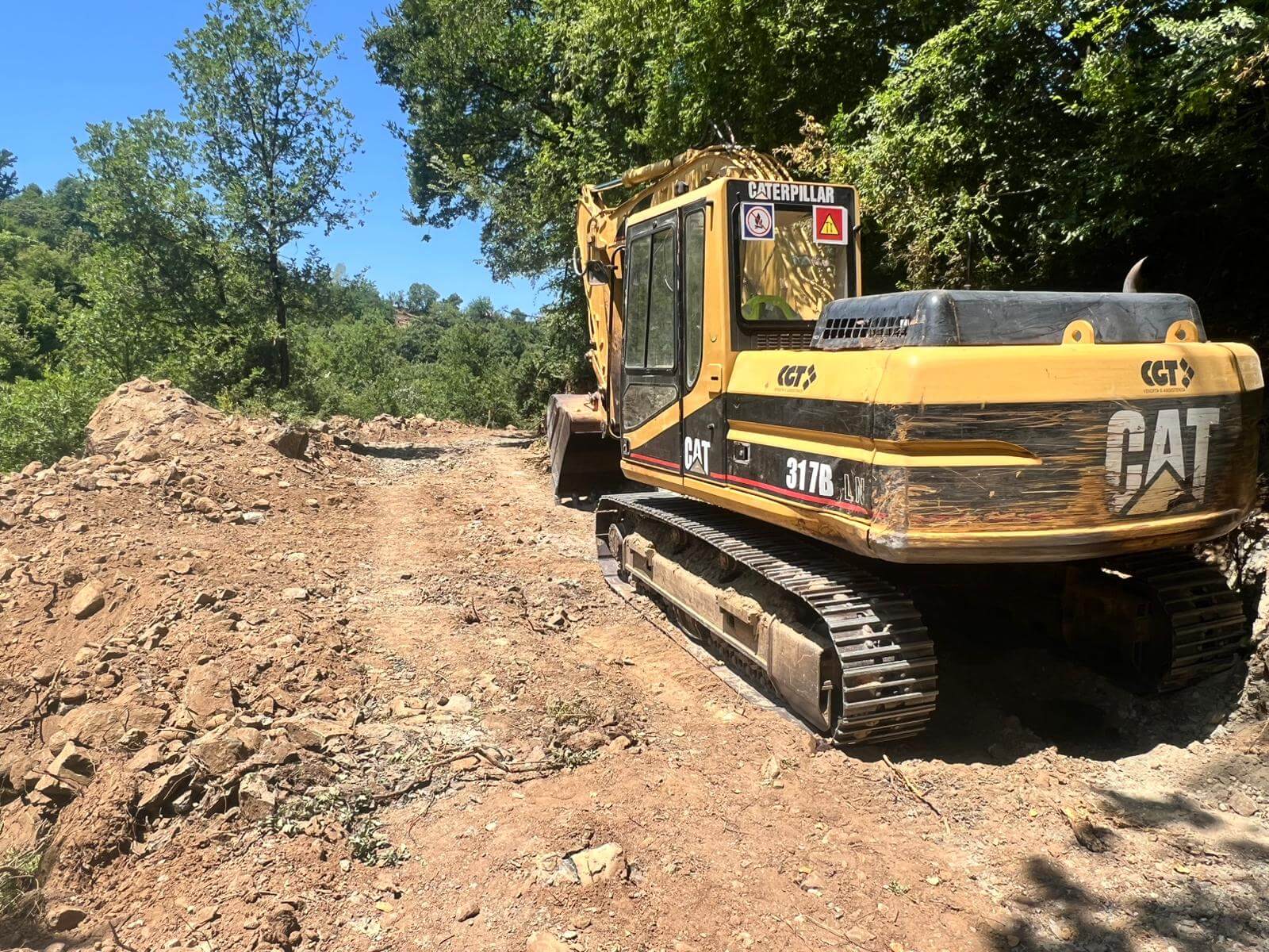 Ekskavator duke hapur rrugë në fshatin Kurdari, korrik 2025. Foto: S. Curri