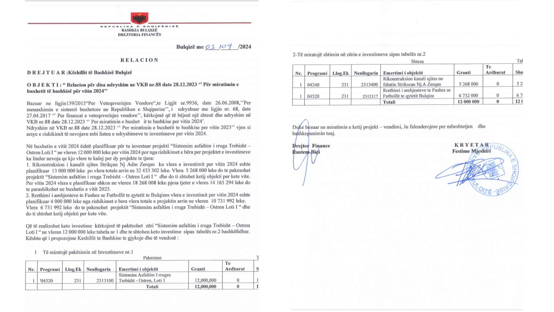 Në relacionin drejtuar anëtarëve të Këshillit Bashkiak, thuhet se vlera e shtuar për këtë investim do të vijë nga rishikimi i projektit për “Sistemim dhe asfaltim i rrugës Trebisht-Ostren Loti I”, një projekt që ishte planifikuar të financohej me 12 milionë lekë. Pas vlerësimit të nevojave të tjera emergjente për vitin 2024, Bashkia ka propozuar që një pjesë e këtij fondi, konkretisht 6,731,992 lekë, të rialokohet për rrethimin e fushës së futbollit.