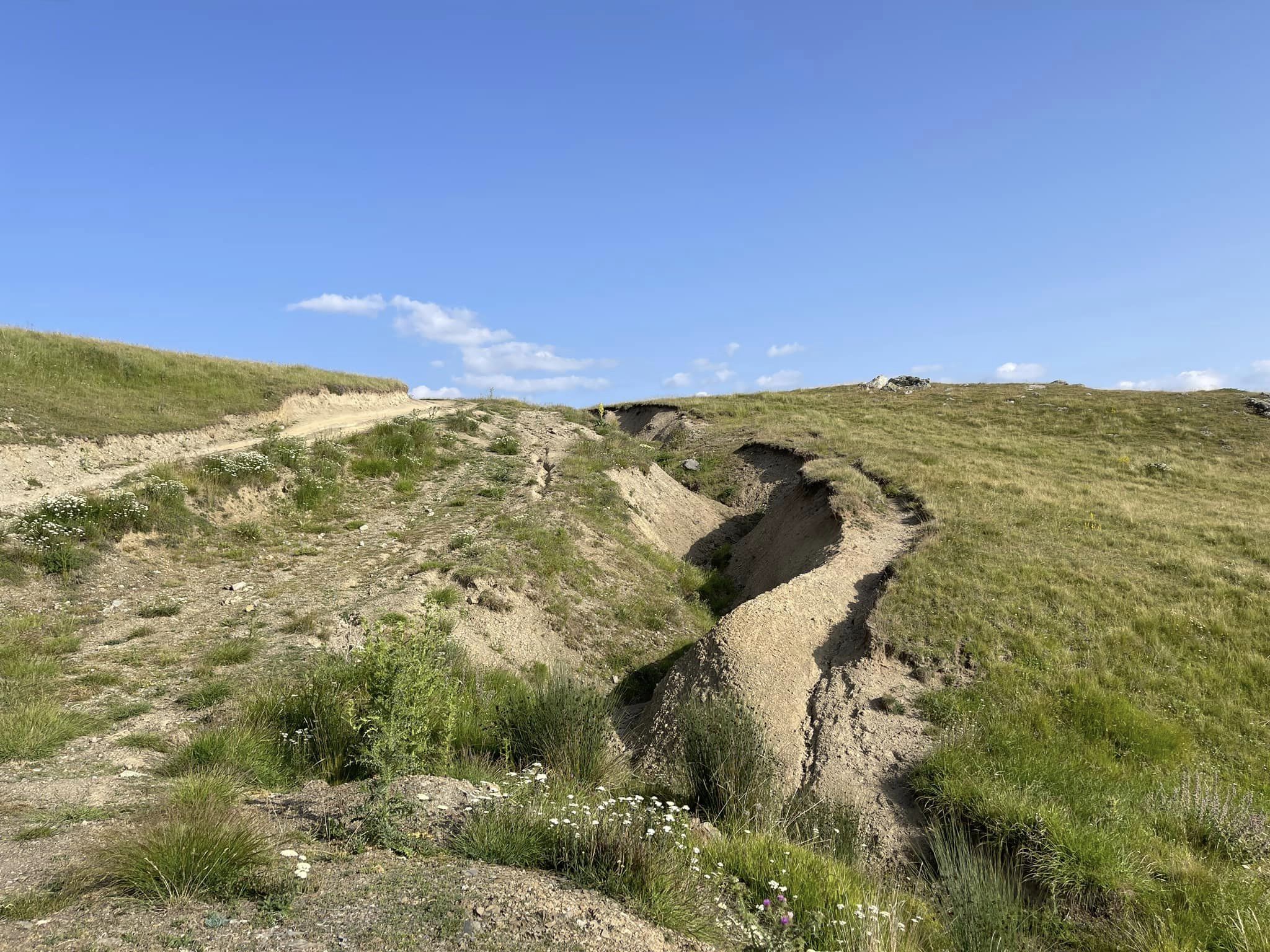 Heqja e shtresës së barit nga fërkimi me gomat e mjeteve zbulon dhe ekspozon tokën ndaj reshjeve. Energjia kinetike e pikave të shiut dhe rrjedha e ujit i shkëput grimcat e tokës dhe i zhvendos poshtë. Të papenguara nga fijet e barit që mungojnë, zonat ku janë shkelur nga mjetet fillojnë të erodohen.