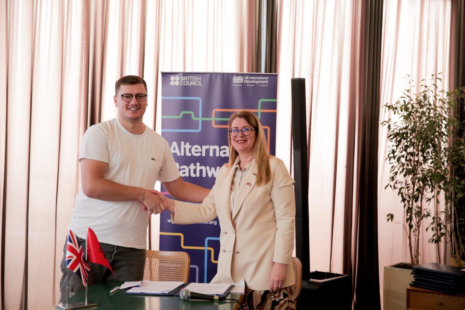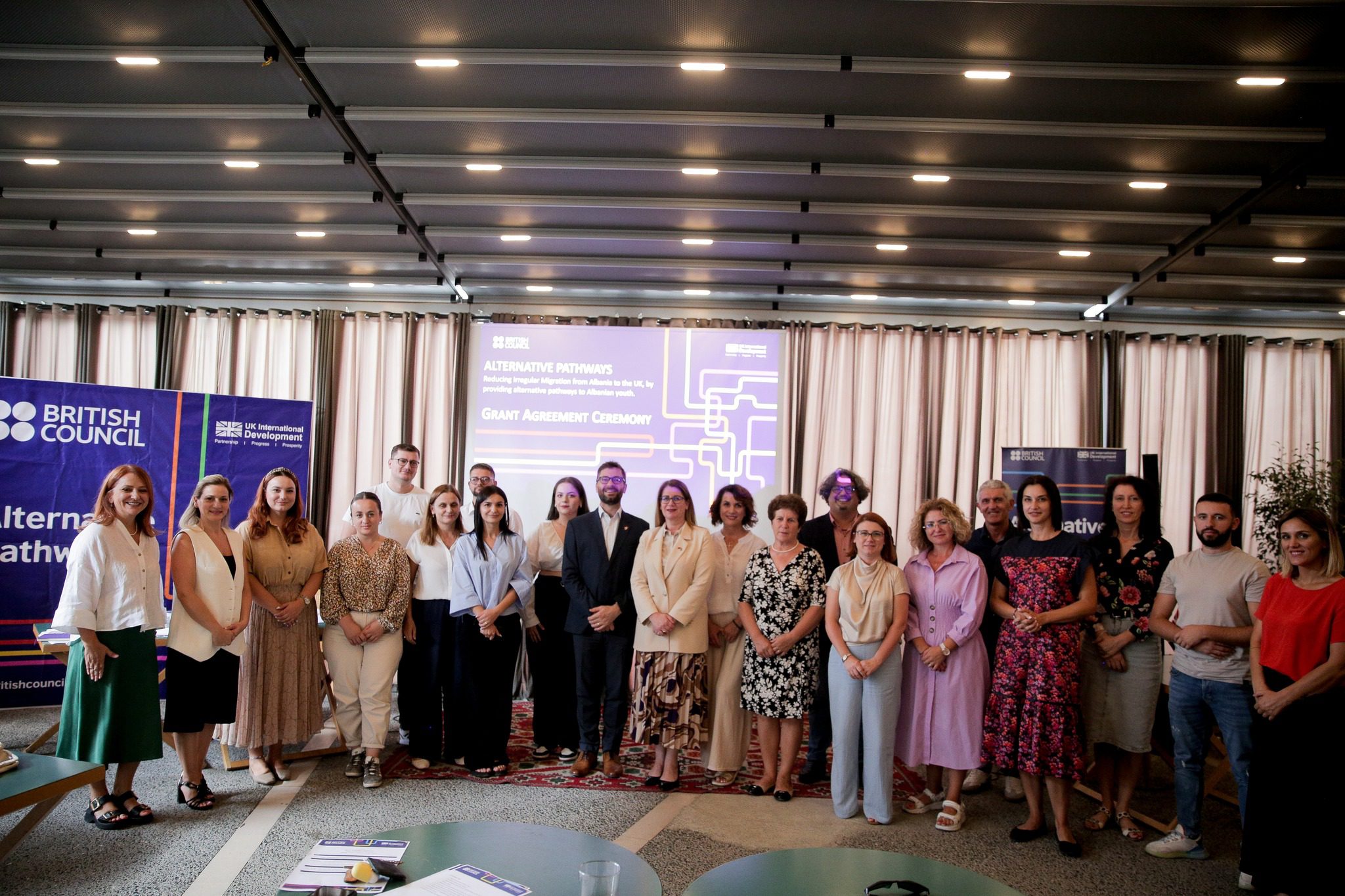 British Council Albania organizoi ceremoninë e nënshkrimit të kontratave për dhënien e 10 granteve, një moment kyç për zbatimin e programit “Sigurimi i Rrugëve Alternative për Rininë Shqiptare.” Ky program, i financuar nga Qeveria e Mbretërisë së Bashkuar, ka për qëllim të fuqizojë të rinjtë e moshës 13-18 vjeç në tetë bashki të veriut të Shqipërisë, duke u ofruar atyre aftësitë dhe mundësitë për t’u angazhuar në komunitetet e tyre dhe për të reduktuar nevojën për emigracion të parregullt.