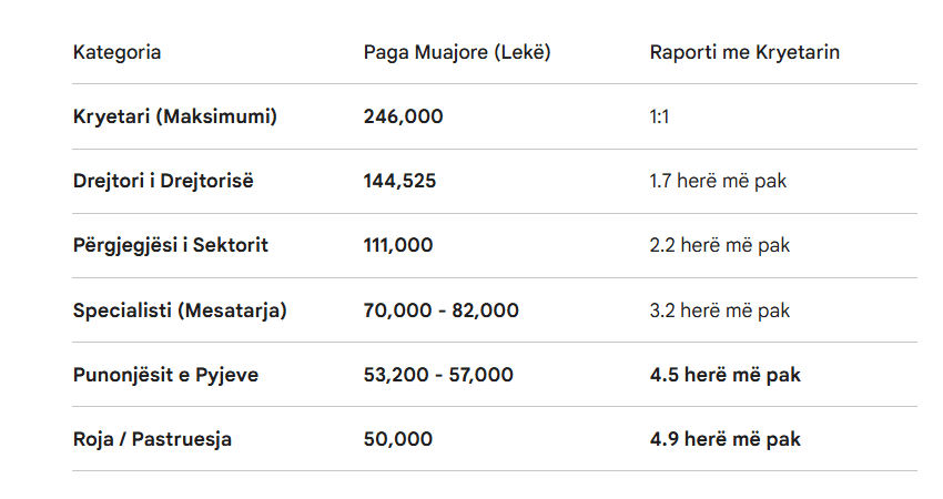 Ndërkohë, ndryshe nga drejtuesit e institucionit, punonjësit e nivelit bazë të administratës pritet të vijojnë me paga minimale dhe pa ndryshime të ndjeshme në strukturën e re. Për shumë prej këtyre pozicioneve pagat mbeten në nivele të ulëta dhe nuk kanë pësuar rritje të dukshme, duke reflektuar një diferencë të theksuar mes përfitimeve financiare të kupolës drejtuese dhe stafit të administratës në bazë.